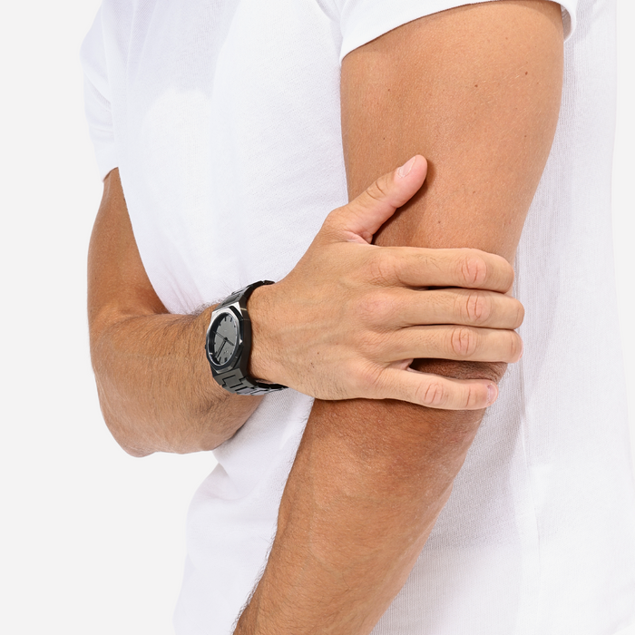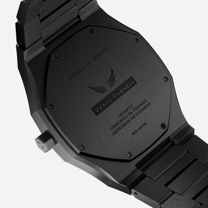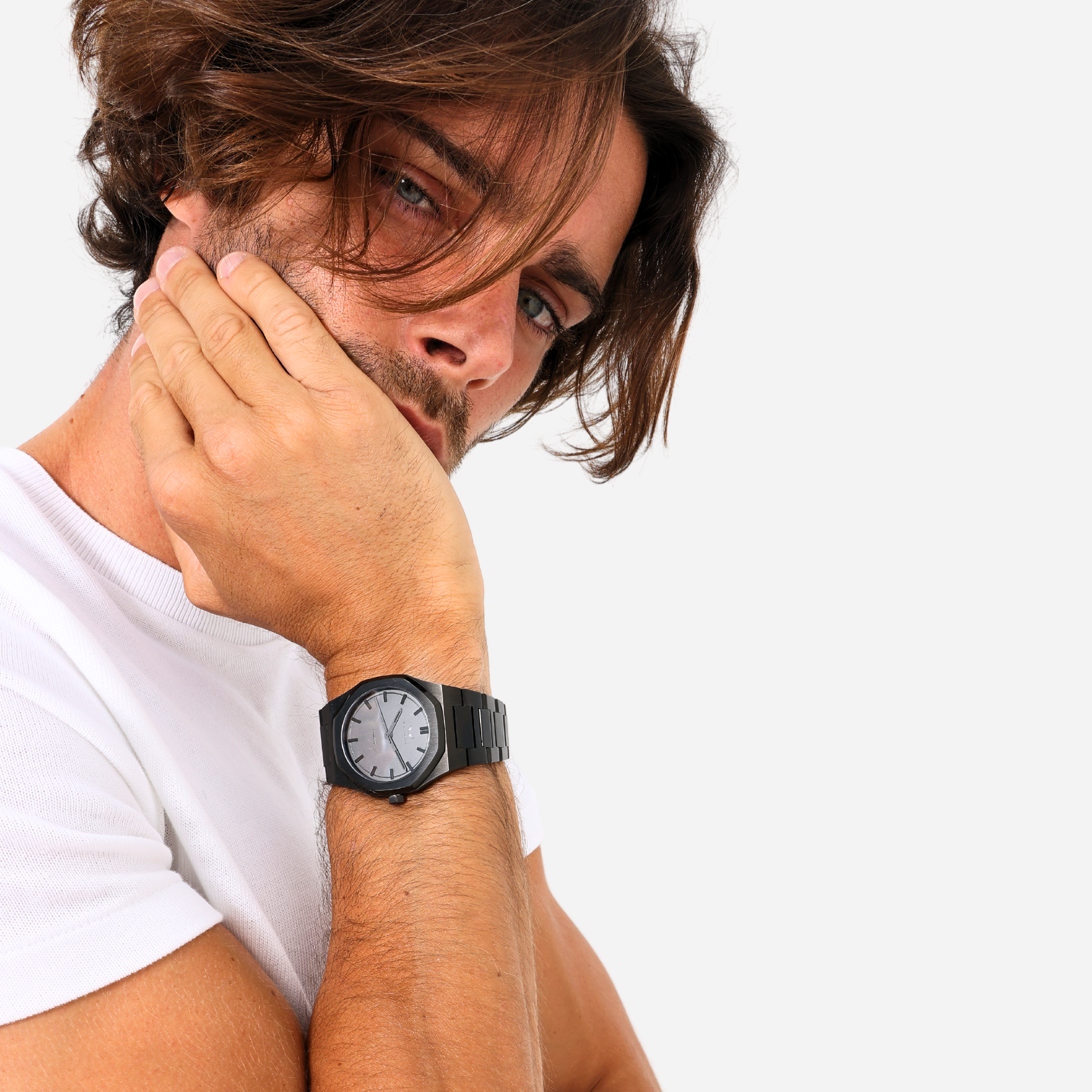 A statement of subtle elegance, this black-on-black watch is your go-to accessory for everyday life, perfectly balancing form and function.