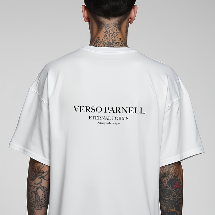 The Signature White Oversize T-Shirt – Middle Logo Edition empowers those who appreciate quiet confidence. With a crisp white finish and a centered Verso Parnell logo, this piece elevates your everyday wardrobe without saying too much. In addition, the clean design pairs well with both casual and elevated looks.